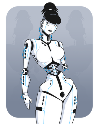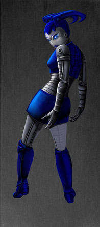 Eh, this one is ok. As you said not as good as the other robot one. But I like how she's pissed off looking. I'd keep that cause it's different than most "fembot" designs. Ya know the ones I'm talkin about. And don't worry love, someday your work will be on the front page, cause it's good.