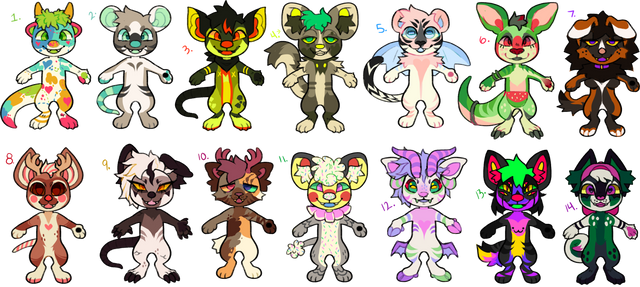 Some fun quick anthro adopts!!I accept PayPal, Venmo, and DeviantArt points [100pts = 1$]