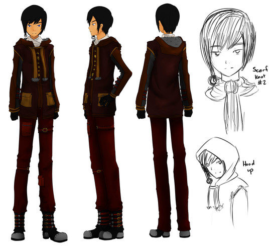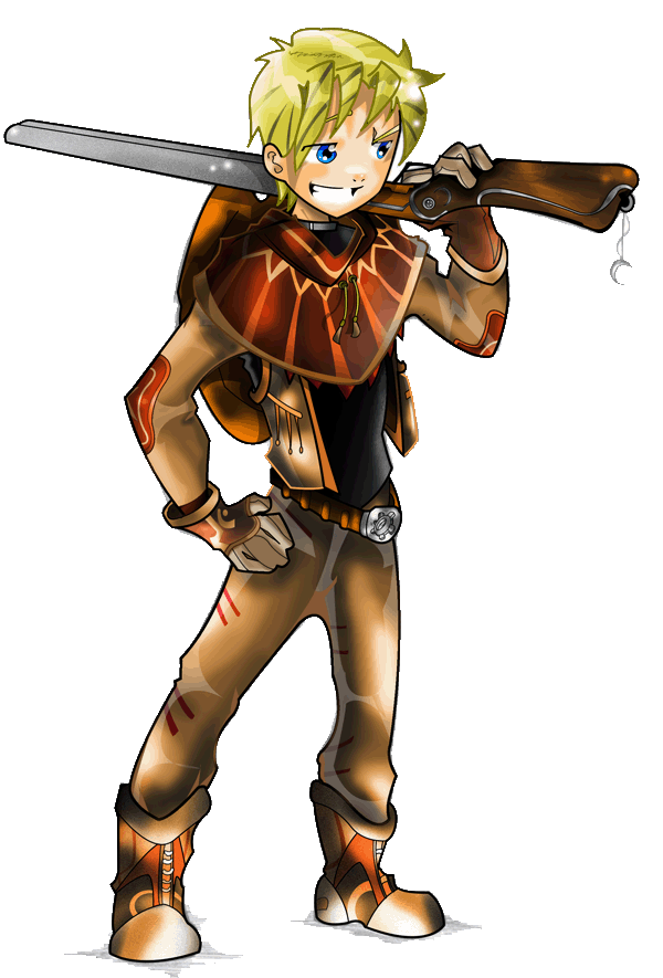 Look at this, ANOTHER steampunk character! I'm a mess...I'm still developing this little guy, but here's the basic story.This guy is a robot who's designed to look 12, and is made out of clockwork parts. His creator was a scientist who acted as a mother to him. One day, there was some type of uprising that killed his creator, and they also ripped off his right arm and half his face. (if you look closely, he's missing an arm.) In a fit of trauma, he grabbed a disgaurded blade on the ground, stuck it where his arm once was, and basically went ballistic on his attackers.Β