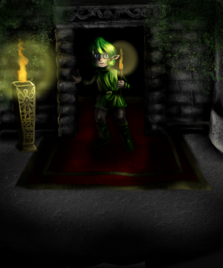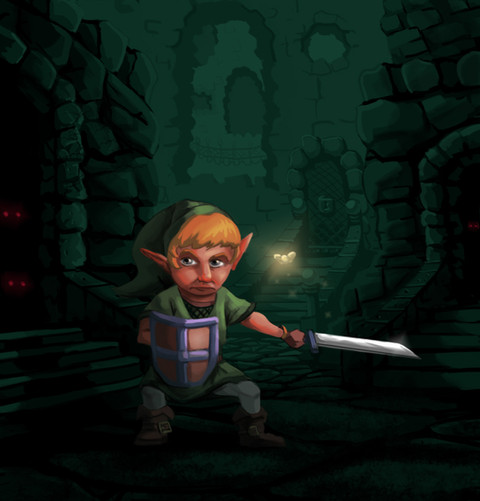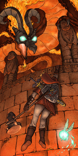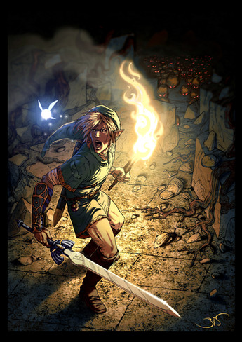 The angle and lighting you chose for this picture just make it a thousand times more suspenseful and awesome! I love Link's expression; I think you've captured the games' excitement perfectly! (plus your artist's comment makes it even better!)