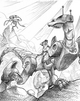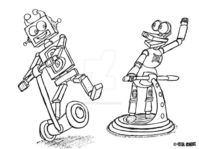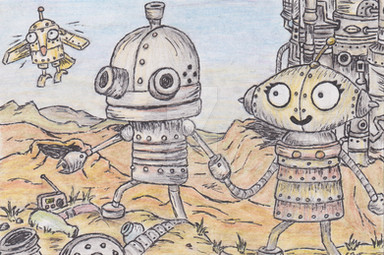 A considerably-built descendent of a line of ConstructoBots, Jimmy was never going to be small. After his family adopted Jessica, he spent all of his time with her, taking it upon himself to raise her. Due to the lifestyle of ConstructoBots, Jimmy essentially became Jessica's only parent. Throughout this period, he taught her most of what she knows about the world, which is to say, not an awful lot. Instead of standard parenting, she learned the art of tormenting her step-brother, avoiding homework, and generally not doing much. But whilst Jessica enjoyed fighting, adventures, and practical jokes, Jimmy preferred quieter pastimes, such as video games (he still holds the Rock-Em-Sock-Em record for the town), card games, and reading comic books. Quite the contrast. After enrolling in secondary school, Jimmy became friendly with a group of 'bots that would be known as nerds by today's standards. They would write comics, play computer games, make computer games, alongside building his very own robot companion (who escaped at a later date to become a raging alcoholic). But whilst his and Jessica's interests drifted apart, his interests in Jessica had increased significantly. As it turned out, his years of looking after Jessica had led to him falling in love with her. But at this point, Jessica was barely recognizable from her old self. She spent her time at parties, dating the guys who bullied Jimmy and his friends, and rollerskating at the park. Choosing to stay at school for an extended course in Inscriptogramming and Nanobot maintenance, he parted ways with Jessica at the end of 2345. After graduating, he went on to work at UKbotics in Cambridge, England. After six years of working in London, he moved back home to Manchester to set up his own Inscriptogramming business, where he met Jessica again, fresh from America, where they became best friends again.