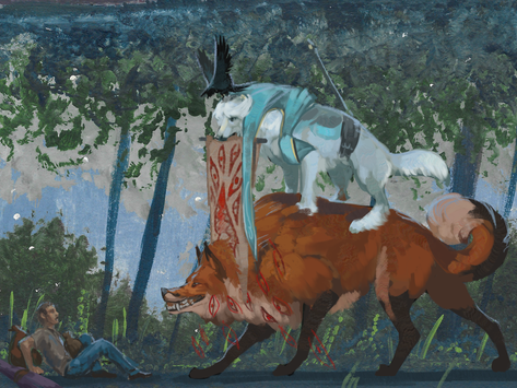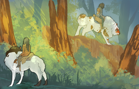 one of the things i would improve tho is that you don't have many values going on, you can go to photoshop or whatver you use and decrease the saturation to 0 and the levels panel and almost all your tones are gathering around the middle tones and lights, is not a very bad thing but in a piiece full of light like this one, contrast is key, darker tones make the whole image have a greater feeling of dept like in the wolf paw it almost feels like is on the same plane as the one that is near us, part is because maybe you need to make it go a little bit more "back" in space but thee light would surely help us to give more sensation of dept c: