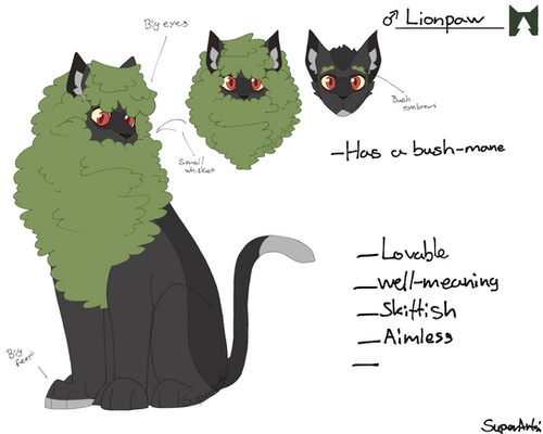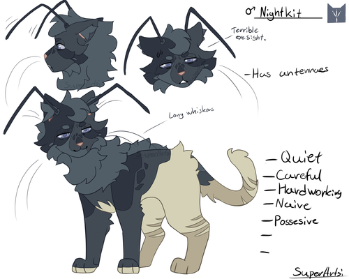 -He's very friendly and polite and others always remember him by that. He's very small and young looking, but he's almost app age and will soon be an apprentice! He's likes to collect stuff he thinks is special, and likes to help others if he can! He's friends with Nightkit and Falconkit, but is closer friends with Condorpaw and usually helps him out in the med-den.