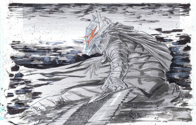 very nice effects on him... love the penciling as well!!! nice expression!!^^