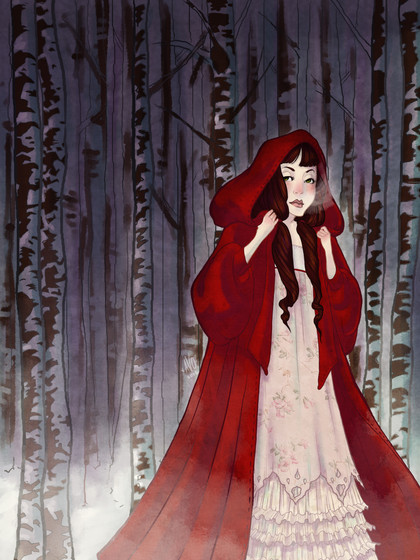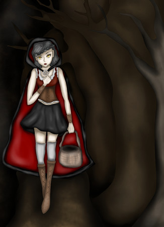 #cape #forest #glow #mushrooms #red #trees #superjay15 #digitalpainting #drawing #fantasy #illustration #littleredridinghood