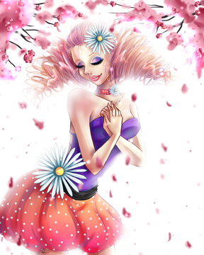 I finished the season girls series! This is the spring girl. It turned out to be my best one. I had started this one months ago but I didn't know what to do with the background. I wanted to put cherry blossom trees but I didn't think they would look as realistic as I wanted. I started with the grass and it looked too much like clouds on the ground so I gave up for a few weeks. Then tonight I looked at it and decided to give it a try again. This is the result. Took hours just to do the background but I am glad with the results. Enjoy!Summer: [link]