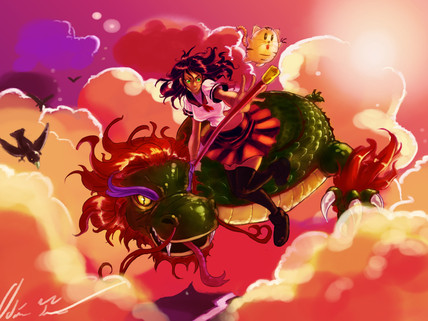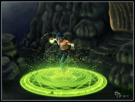 Love the lighting in his hand and the composition is really cool for the most part. My only issue is the bright yellow lights you have in your image. I think they are really distracting from Akuma. I think that the piece overall is just a little too bright with all the different light sources that sorta complicate things. I think it would look so much more eerie if you had either just the red moon and hand as your light source, or maybe just one of those. I would also zoom in a little more, or make Akuma bigger. Last issue I have is with the orbs. I like the concept and see what your trying to do but I think you could make them a little more dynamic. Perhaps make a few closer to the viewer and let them draw the viewer into the main focus a little more.