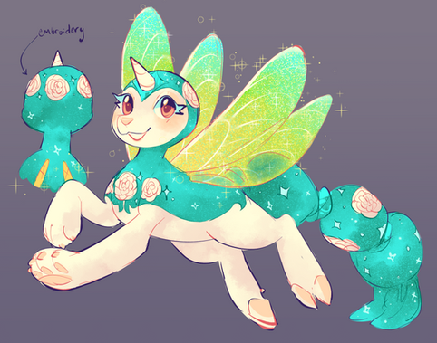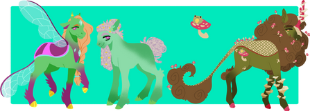 next up in the reduxes is... rosedust! rosedust is the aoh version of fluttershy, and is inspired by several ponies. namely, g1 posey, fluttershy, rosedust, and the flutterponies, g3 fluttershy and the breezies, and of course g4 fluttershy!Rosedust hails from the faraway land of Butterfly Island, home of the Flutter Ponies. A distant relative of the Pegasi, the Flutter Ponies are insect-like winged ponyfolk that live exclusively on Butterfly Island. Other ponyfolk have tried to settle the land, but it had proven every time to be too hostile for other species. Not due to predators in the traditional sense -- dragons and other predators of ponyfolk are common enough on the mainland of Equestria, but the true thing that makes Butterfly Island hostile are the enormous plants and insects that make their home there. For thousands of years, the Flutter Ponies have cultivated and cared for these massive, carnivorous plants. Rosedust comes from a long, long line of these gardeners. Her talent and word of her green hoof spread all over the island, and eventually word reaches the mainland, all the way to Dream Valley.
