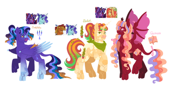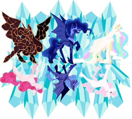 in my universe/mlp overhaul/au, the pillars of old equestria are the first alicorns, and luna, celestia, and amore learned how to ascend from their teacher, starswirl the bearded. stygian headcanons coming up later, hehe !check individual designs here: twitter.com/PONYKITSCH/status/…