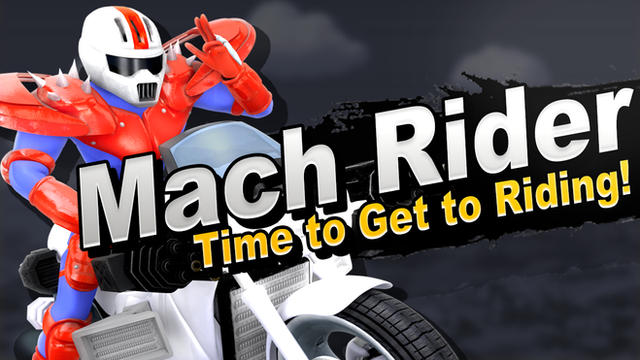 Side-B - 2nd Gear: Mach Rider will hop on her bike and ride it around, similar to Wario's side special. The only difference is that you can't lose the bike because Mach Rider is always on it or holding it up.