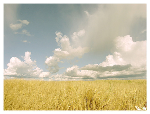 Pretty photo! I love the perspective of the clouds. The grass adds a unique texture and together with the clouds make a beautiful photo. Great job.