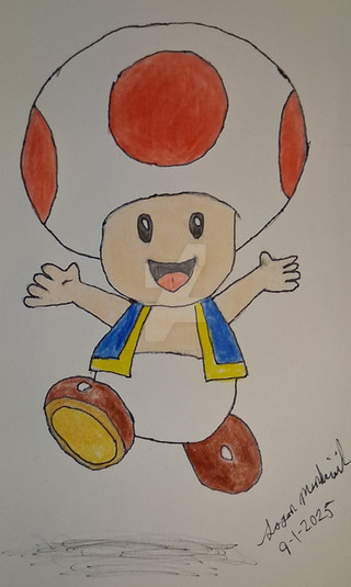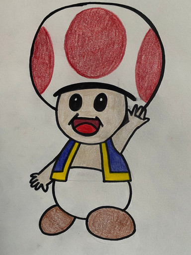 The countdown for 2023 has gotten started. We have 17 hours left I believe. I’m posting this picture while waiting for my bus to pick me up for work. It’s very early; I know. This drawing I did isn’t anything special. I did mention Toad is one of my favourite Super Mario characters, so out of creativity one day I just drew Toad in my black sketchbook. I didn’t colour the picture in until yesterday. I think it’s accurate to one of those pictures on Google. What do you guys think?Toad (Super Mario) belongs to Nintendo.