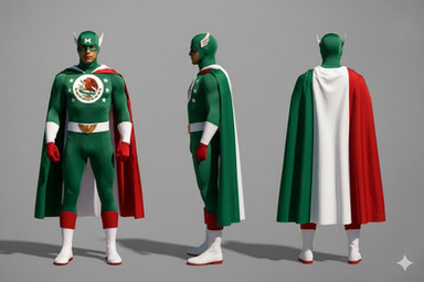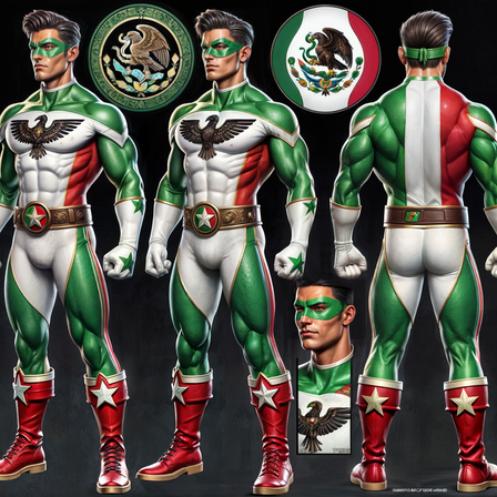 Dude! That's is one heck of an original superhero! The colors blend in nicely. Mexican flag colors I assume? And the underwear on the outside is simply classic. 5 stars from me man.