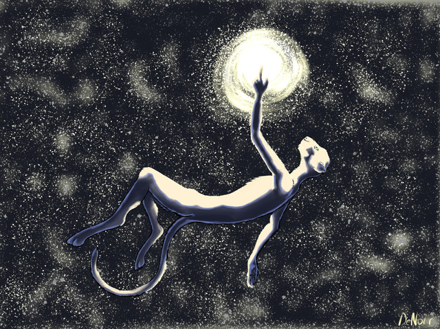 …and The Entity, again adrift in space, with a passenger. It’s just like the previous submission, but different!Amidst repeated reassurances that traveling through the void while held inside them is perfectly safe, Entity provides passage from one end of known space to the next. Between steps through the interuniversal folds, Entity occasionally stops to marvel at the material world from within.