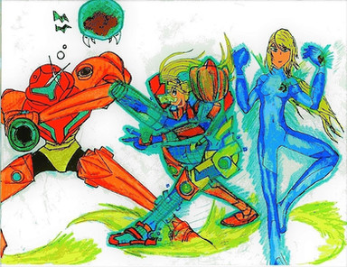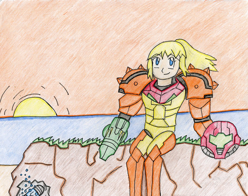 Some more drawings to upload, and this is a different style to tribute my favorite game, Metroid. Really hard to do with all the shading, and I'm still not all that happy about it really, but it's not too bad I think. I hoped to give it more intensity. This idea really came from the transition scenes in Gurren Lagaan. Kinda wish I had a good background for this, but I'm too lazy to do one.Materials: Pencil, Eraser, Copic Multiliner Pens, Gel Pens, Sharpie, Copic Markers.