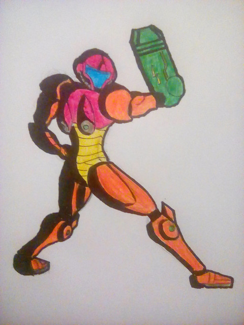 I used Sharpie to outline a couple areas, mainly around Samus (Zero Suit) since she's in the foreground.