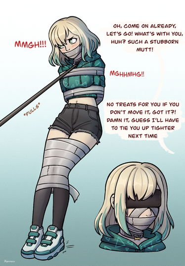 I love how by clicking on the roll of duct tape you can basically mummfie Natsa! 3rd click:tape gag and muffled mumbles, 4th click:almost mummified and thinking "Knock it off I can't escape already!",5th click:completely mummified and thinking "How do I get myself into these situations?" Easy answer to that question Natsa, because you're a beautiful damsel in distress! Great pic!