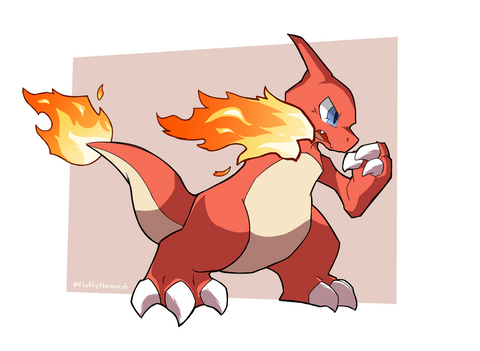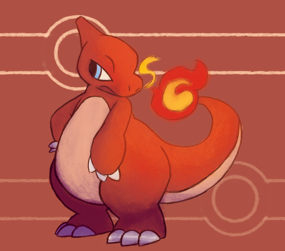 Charmeleoooooon! The angle and pose look amazing! The fire also looks awesome, and I like how you've coloured parts of the line art *o*