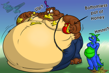 Well, at least he hasn't gotten started on the pot of Bee Barf! C:
