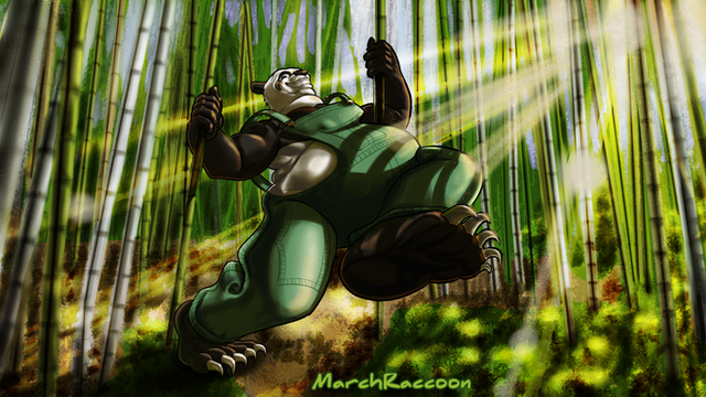 Why you look down??? You should know never to look down. Lol jk the piece is amazing, especially how detailed the background is with the trees and the people/furries in the back.