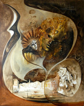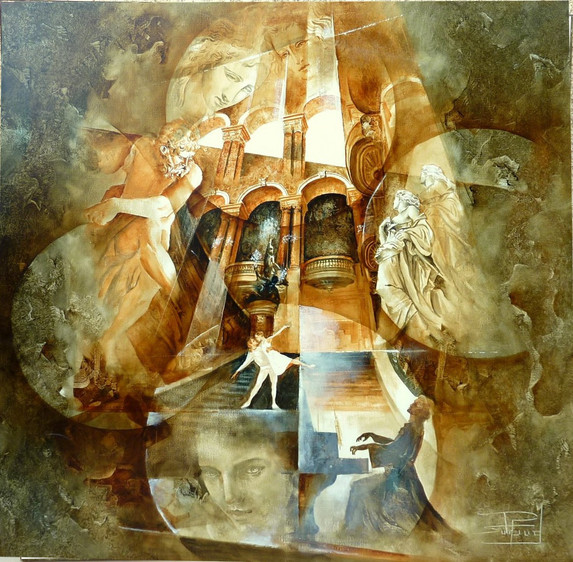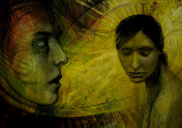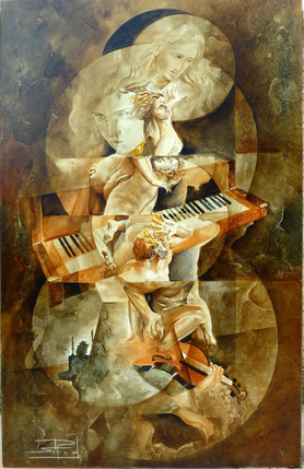 I'm curious, does the combine pieces make a picture as a whole (or is it just the way it is)? Because to me, the white color in this art looks like running water..kind of like landscape and the very circle on the top looks like the moon. Hehe, maybe it's just my wild imagination.