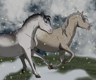 I can't believe we've already had her first snowfall here in Canada. While I'm definitely not looking forwards to my daily hour commute in the snow it means I can start drawing winter drawings soon! Anyways, here is my breeding image between Ricky and the absolutely stunning CSS Queen of Pearls . I'm so excited for the lovely foal! Thank you once again for letting me breed to her!Related content