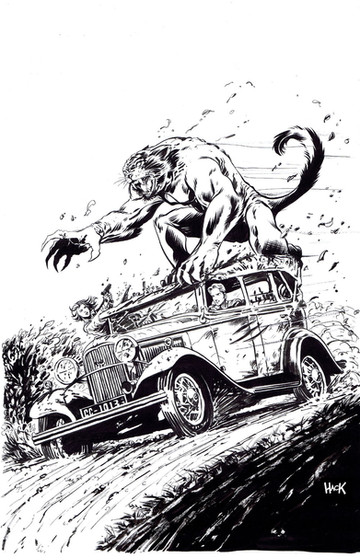 ...this was my first official drawing of Mitch Hyman's "BUBBA; the Redneck Werewolf", did this back in 2001.I have drawn two full issues of the character plus some promo illustrations and T-Shirt designs, needless to say, I have improved over the years, especially on the rendition of BUBBA's girlfriend; Bobbi-Jo(she doesn't look as trampy anymore).