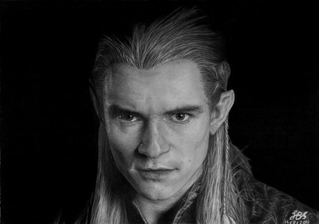 Legolas the elf from LOTR, played by Orlando Bloom. I loved the back-lighting in this shot, and I just had to draw it. I missed out a lot of the real detailed skin texture in this one, but hey, he's an elf, so it's OK if his skin looks a bit girly.Drawn in graphite on A3. Drawing time about 14 hours, about a year ago.