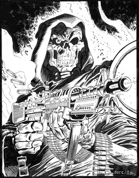 Taskmaster is a villain who once he sees a move or ability he can match it or reproduce it. Scary Merc id say with that skull face as well.Has been in Comics, Games and other things.....