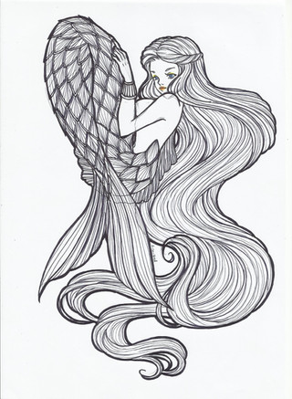 Wow, she's beautiful!! I love the look & shape of her tail...the curves are very attractive!! The extra little fins on the sides of her tail look great, too!! I'd love to see you add webbing between her fingers where the webs resemble the look & texture of her frilly 'hip fins' on her tail...that would look awesome!