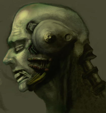 His kind was designed to gather intelligence, keep watch on suspects, and infiltrate sketchy areas and countries for the CIA. Only high executives of the Neo-US knew their kind even existed. His shorter size, thin build, and excessive joints allow for quick movement, flexibility, and smoother fitting. His eyes were created larger in proportion to his body than most droids in order to have a far wider range of vision, better depth perception, and to house the multiple complex technologies inside. The black markings around his eyes are there to aid in long range sight and sharpen images by blocking out "distractions" around the eyelids. The "third eye" located just above the brow is a thermal sensor that can detect even the slightest change in temperature. When running near maximum speeds, he moves in a kind of jump-gallop that propels him farther faster.