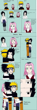 Thats soooo cute!^^ I love the ending part the most. Its what u would least expect to hear from Sasuke, which makes it even funnier! I love the SasuSaku pairing! Keep up teh awesome-ness!