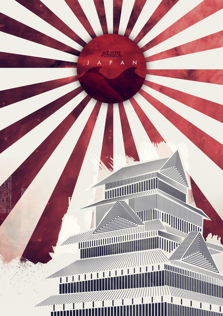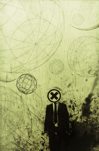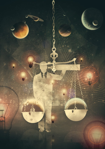 I think it is a great demonstration of multiple images forming together to create one amazing piece. from the space ship to the faded eyes. the rose and the airplanes. these small details that complete this piece. The geometric shapes and lines that form together seamlessly with the clouds, moons, and rocks. Shows the blending of technology with nature. even down to the simple yet perfect colors. a great monotone piece accented with touches of color for a balance achieved only in nature and in the deeps of great wisdom.