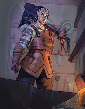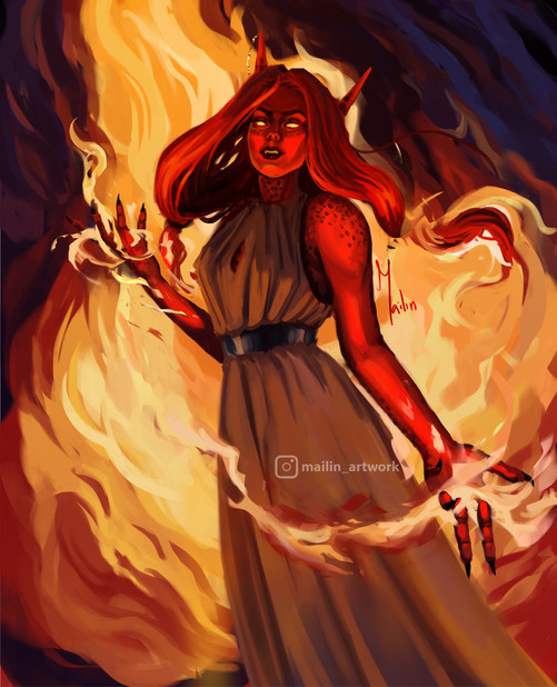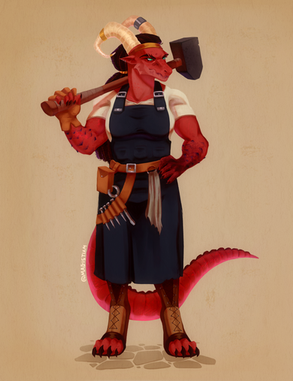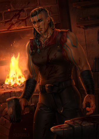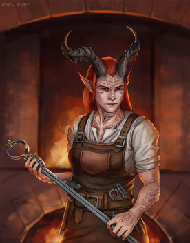 #blacksmith #female #forge #longhair #redhair #tiefling #digitalpainting #dnddungeonsanddragons #blacksmithgirl