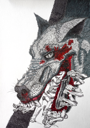 #a5 #ballpen #blood #drawing #fight #red #sketch #wolves #sususketches #schuledesungehorsams #traditionaldrawing