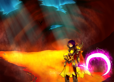 Behold! Even more Terraria Fanart! Featuring, the almighty Dark Lance! The malignant shadow armor! The malevolent obsidian skull! The vile corruption, populated by the infernous variety of eater of souls, devourers, and the dreaded Eater of Worlds!By the way, I messed up her pose so much... I'm sorry guys I know- please don't remind me about it >n<