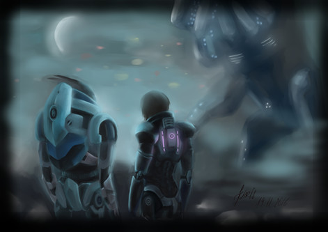 Awesome! I like how you've done the lighting and how Liara and Shepard and silhouetted by it.