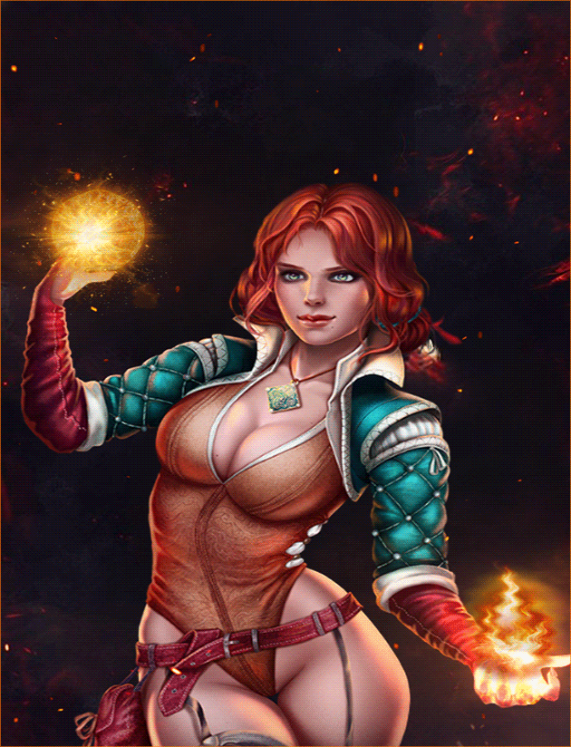 Apparently, Triss has been placed in a really hot spot, considering her situation AND those flames in front of her!