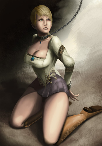 Interesting theory again, yes they are manacled but too dark too see. in my first intention, her palms are opposite to the wall but with your logic, I really find it making more sense why she has to bend. and Thank you so much for your imaginative and analytical storytelling including the other comments as well, I find it more arousing!
