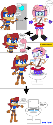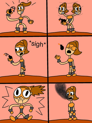 Requested byIf you wanted one last test by the Bluewing sisters, well prepare to be disappointed. Ocanickle is not interested in being inflated and even doing this test. BTW, the brown little scribble is supposed to be a tumbleweed since the tank isn't used in this comic.