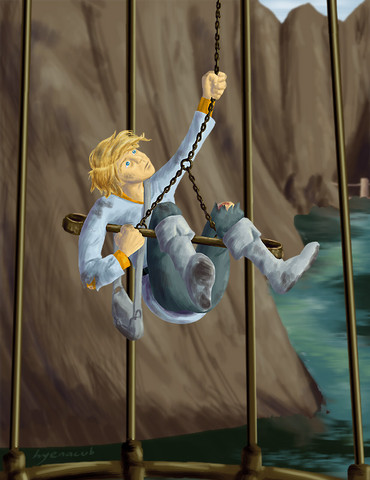 The princess was unfamiliar with this kind of binding, or any for that matter, but this wall of metal had a slot in the shape of a hand, centered by fashioned bars of steel. “Put your hand in the thing and turn it left.” The young man mumbled patiently, waiting with a bowed head. She slid down to his collar bone to use as steady flooring in getting to the hand lock.