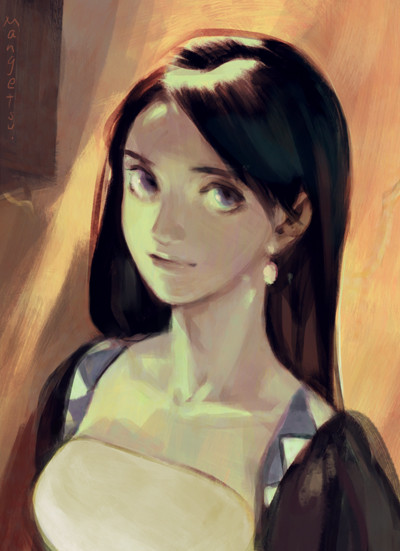 the way you've used shading and coloring. it looks like an antique! it's very beautiful