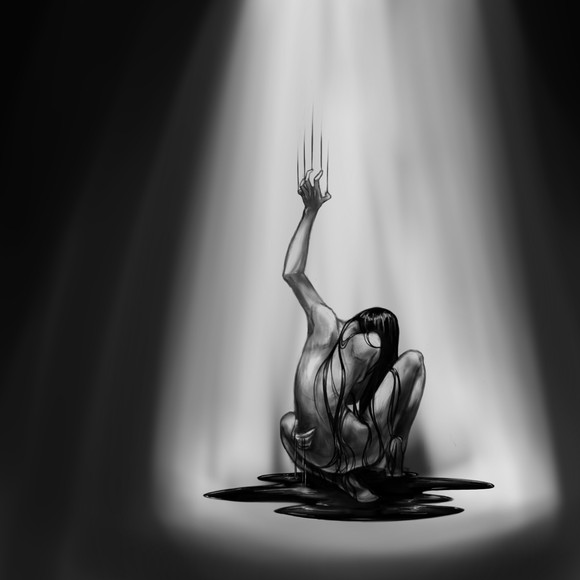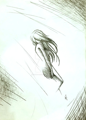 I like how everything's grey, but her(you, from what I read in the artist comments). It looks so sad though...like all that grey represents rain and sadness :C