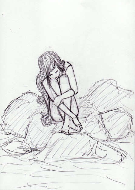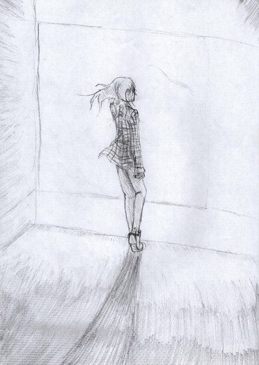 I was kind of hesitant to upload this... because i kind of like it, but it's also extremely messy, and there's not too much to work with. I liked how she stands out though, because i was starting to clean this up, but i kind of liked this stage of it best.This is as close to a self portrait that you're going to get. It is actually me this time, not some alter personality, or what i wish to be. This is me when i'm sitting on my windowsill thinking. I love to stare at the skyline where the clouds slowly roll across the blue. I love clouds more than anything, if only i could draw them XD