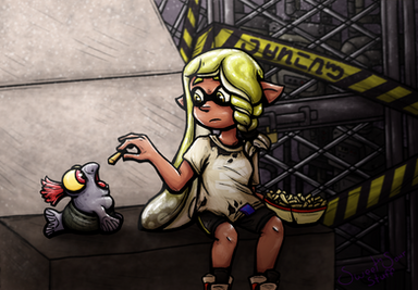 So neither I nor my friend have ever played Splatoon before, but I was interested in the third game coming out for a while, so I figured since the testfire was free and kinda like a demo I'd try it out (and dragged my friend into joining me)Anyways I sucked ass lol. Which I expected, but in spite of not being good I did have lots of fun!!! I ended up using the Octobrush most of the time, but I did play with the Splat Roller and Dark Duelies a bit, but with the Duelies I kept forgetting I had and not using the dodge rolls lmao. I don't have that kind of reaction time yet forgive me. But the best part of the experience was in the training room between matches, where like 9/10 other players would join me and my friend in flopping as a squid. Ah, friendship