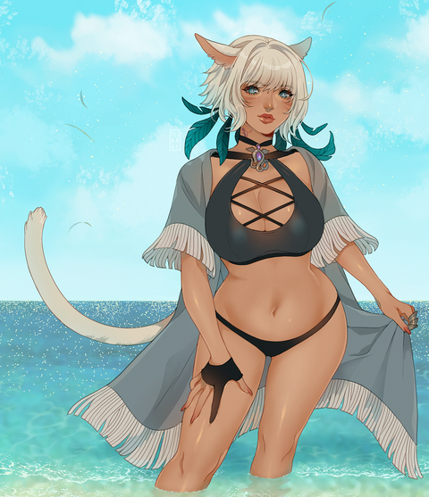 #beach #cute #seashells #sketch #ffxiv #digitalpainting #finalfantasy #sketchdrawing #miqote #miqotefemale