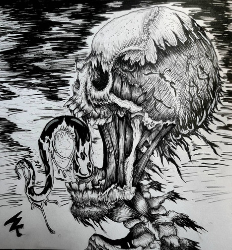 #brain #death #drawing #heart #inkdrawing #skull #snakes