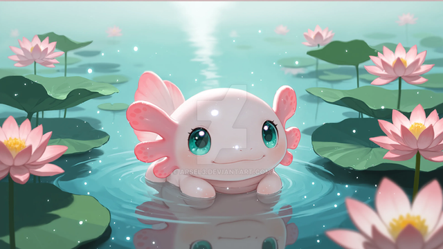 #digitalart #aquatic #calm #cute #fantasy #gentle #glowing #magical #nature #pastel #pond #serene #tadpole #water #whimsical