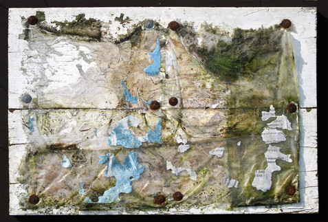 Acrylics, spraypaint, collage on cardboard13x27cm