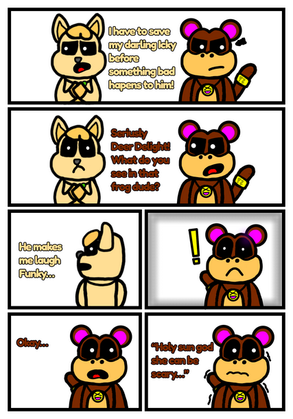 I wish I had the motivation to make comics more often. They may not be the most fun for me to do, but they're definitely the most fun to look at- I'm a sucker for character interaction.Also, fun fact about this drawing: This was the first time I drew Pizzy with the tufts of hair I'm pretty well-known for drawing her with as well as when I started consistently giving her body hair!